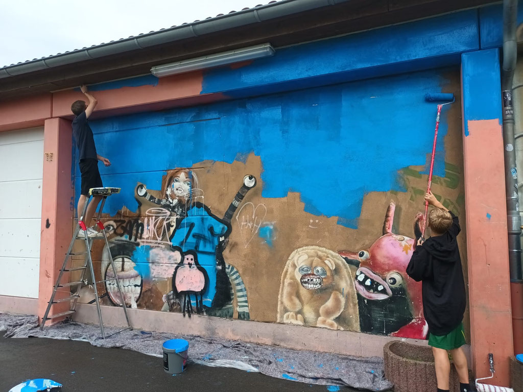 Jugend gestaltet Zukunft >>> Graffiti-Kunst verschönert den Jugendclub <<<